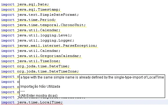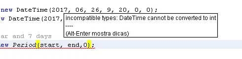 raphael conseguir importar o jar Joda Timer mas estou com um erro no codigo que não consigo solucionar o erro esta em Period period = new Period(start, end);