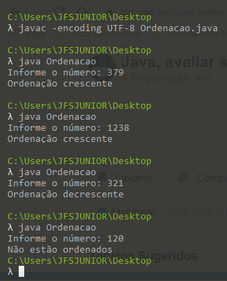 Boa tarde! Estou a iniciar um curso básico de Java e tenho um problema para resolver, preciso criar um programa que dado um número n, introduzido pelo utilizador, verifique se os seus dígitos estão ordenados de forma crescente, decrescente ou se não estão ordenados.
