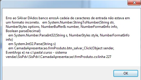 resp = Nproduto.Inserir(this.txtNome.Text, this.cbMarca.Text, this.cbUnidade.Text, Int32.Parse(this.txtCategoria.Text),