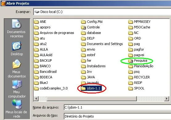 o verde eu acesso, vermelho não consigo e dentro está todas as pastas criadas pelo Netbeans.