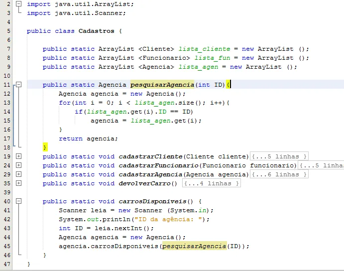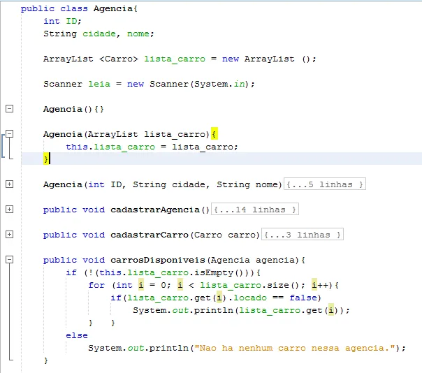 E então tenho outra classe chamada Agencia, onde possuo o arraylist lista_carro, que representa o cadastro de carros nessa determinada agencia cujo ID é especificado.