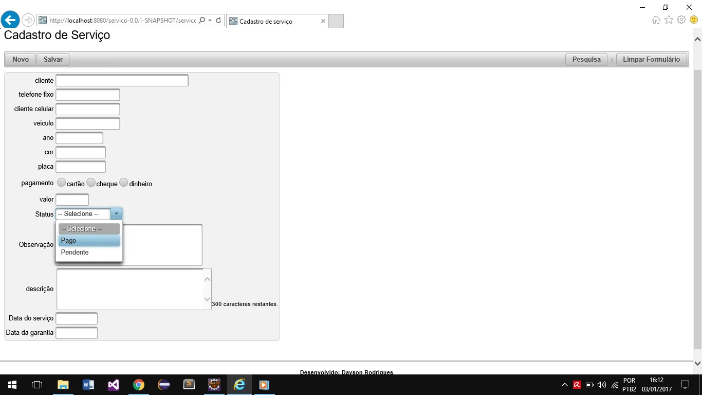Tenho um combobox onde possui 2 opções, quero que quando eu clicar em pago, a opção debaixo que é observação não apareça, e quando eu escolher pendente ele apareça, como faço isso?