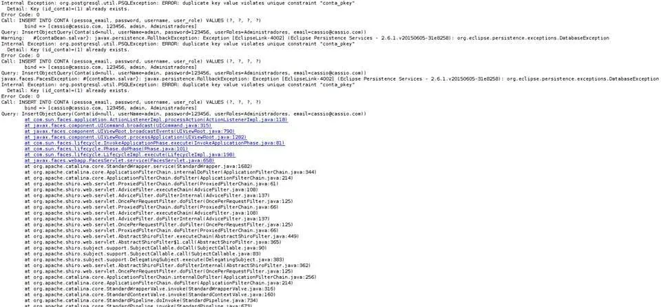basicamente diz que estou inserindo um objeto com um id que já existe.