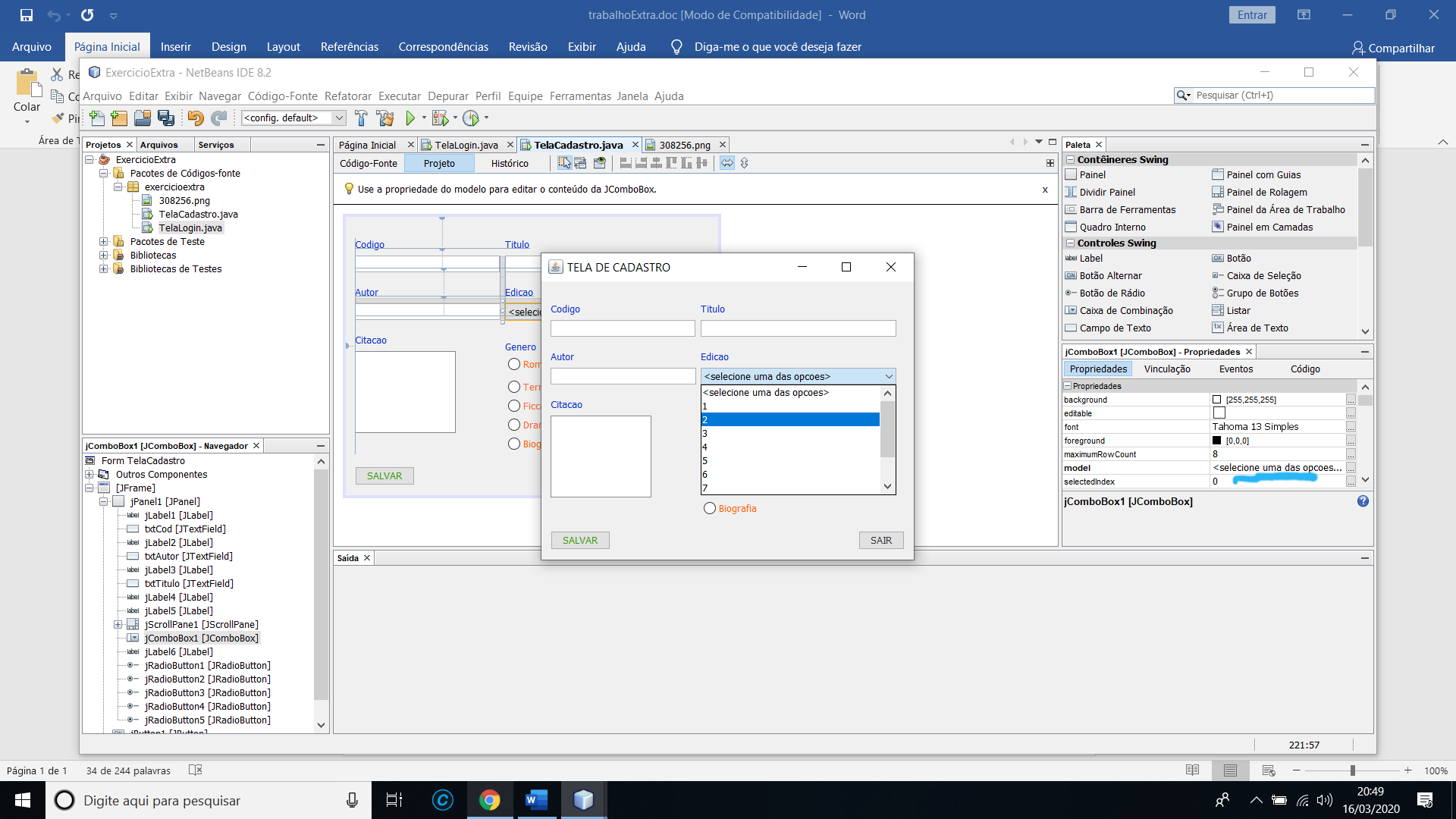 (jComboBox1.getSelectedItem().equals("frase que aparece no console exatamente como tá!"))