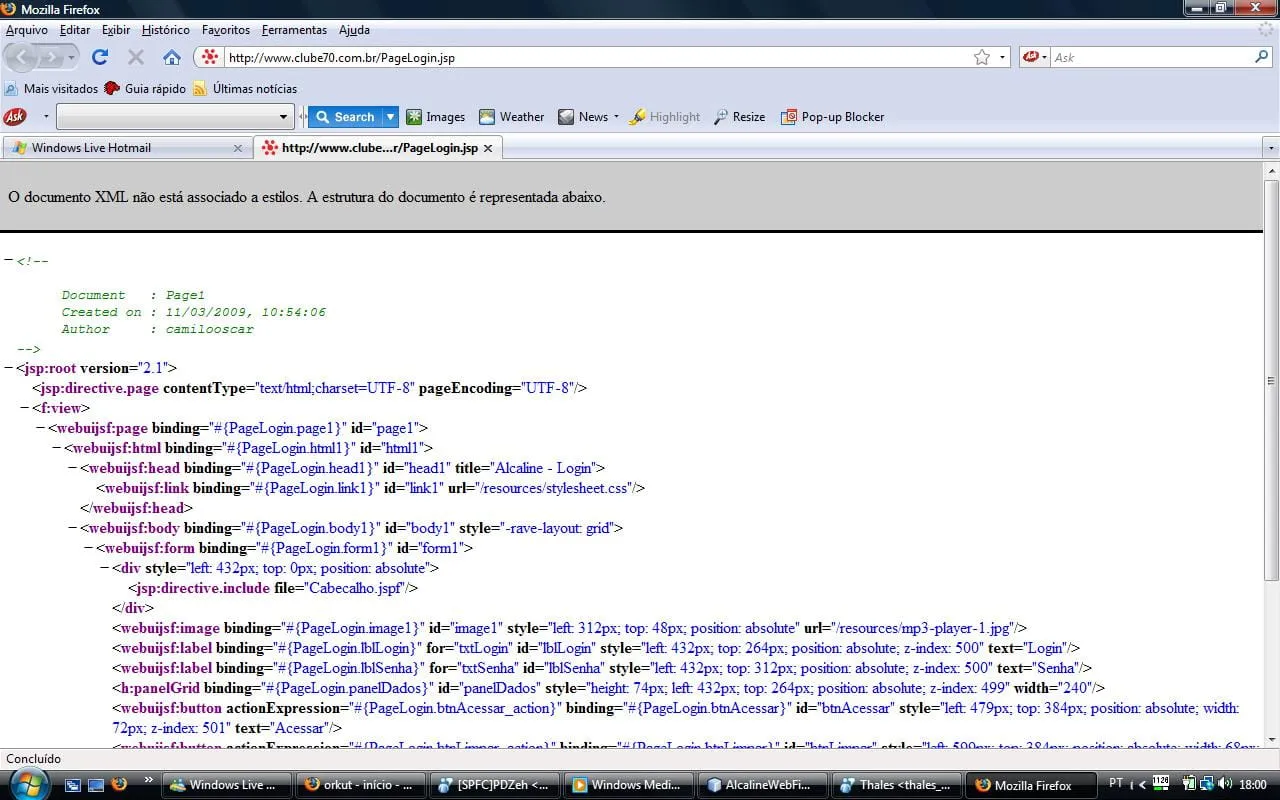 Na hora de publicar a pagina faço o up do arquivo e quando acesso a pagina de inicial de login, ela aparece como nesta foto…