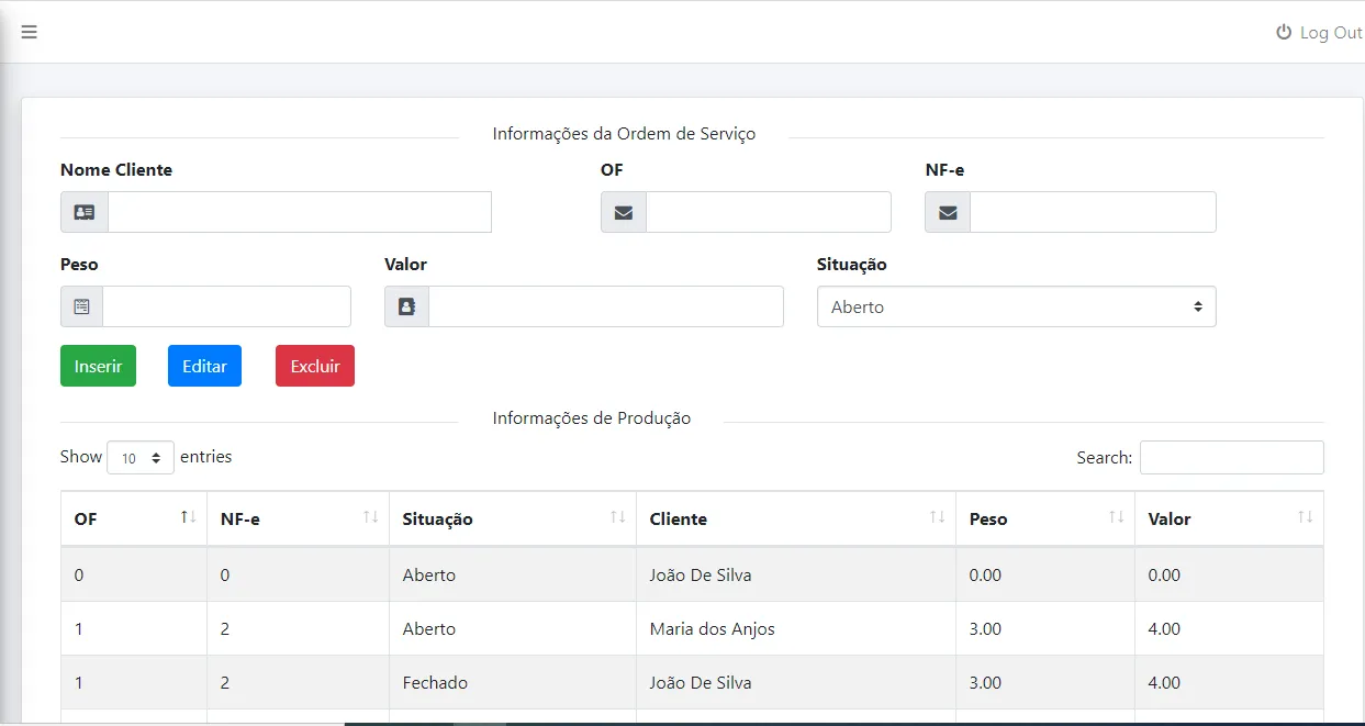 Então, a partir disso, abre-se uma página para cadastrar novos faturamentos e uma lista de faturamento entre essas datas: