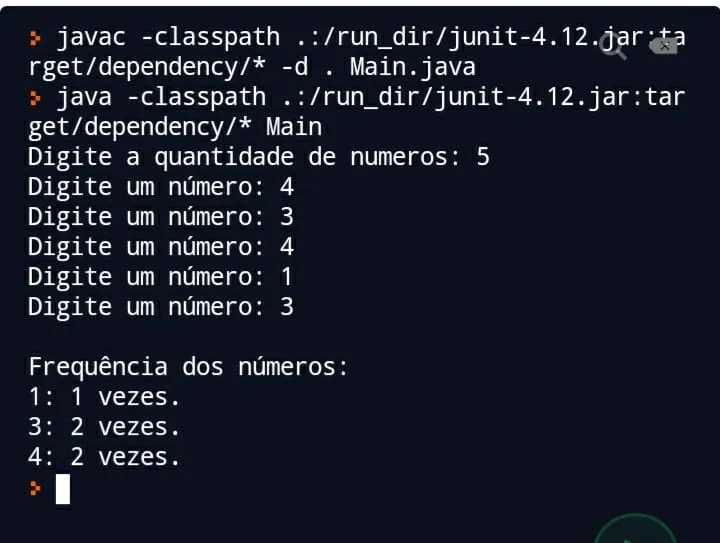 System.out.println(" repeticoes numero " + num + ": " + cont + " vezes");