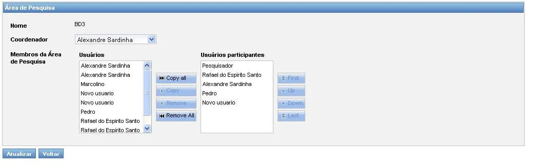 Os papéis acumulam responsabilidades. Assim, seu eu sou um usuário com papel Pesquisador, acabo sendo também um usuário do tipo Educador e Usuário comum.