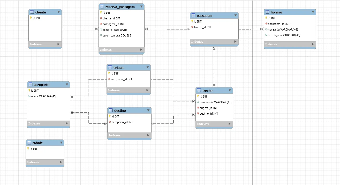 Creio eu que tenha feito correto até o momento, mas surgiu uma dúvida com relação a como eu colocaria o relacionamento de Local Destino / Local Origem ou Aeroporto destino/ aeroporto Origem…