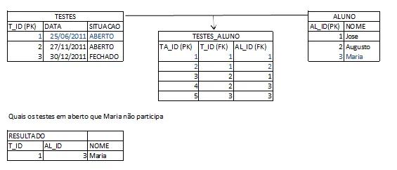 meustestes = em.createQuery("select DISTINCT t from Testes as t join t.testesalunos as ta join ta.aluno as a where t.situacao ='ABERTO' and ( a.alNome <>"+alu.getAlNome() + ")" ).getResultList();