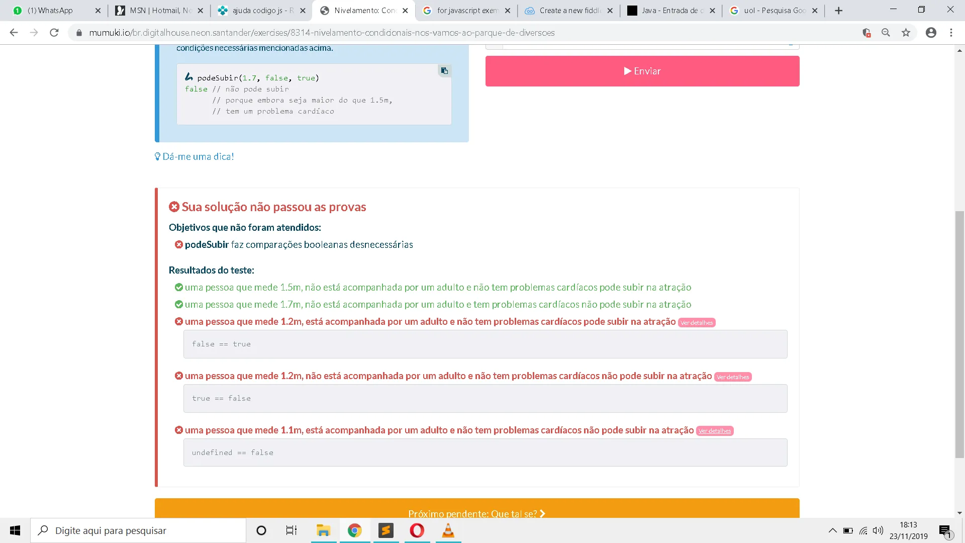 1 - Se a pessoa tem a altura mínima de 1,20 m, mas ão chega a ter 1,50 m: alturaPessoa >= 1.2 && alturaPessoa < 1.5.