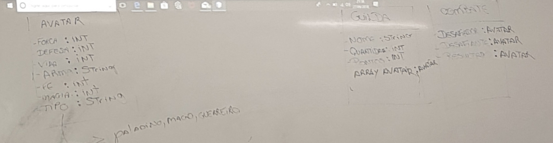 Avatar sendo super classe dos personagens: paladino, mago e guerreiro
