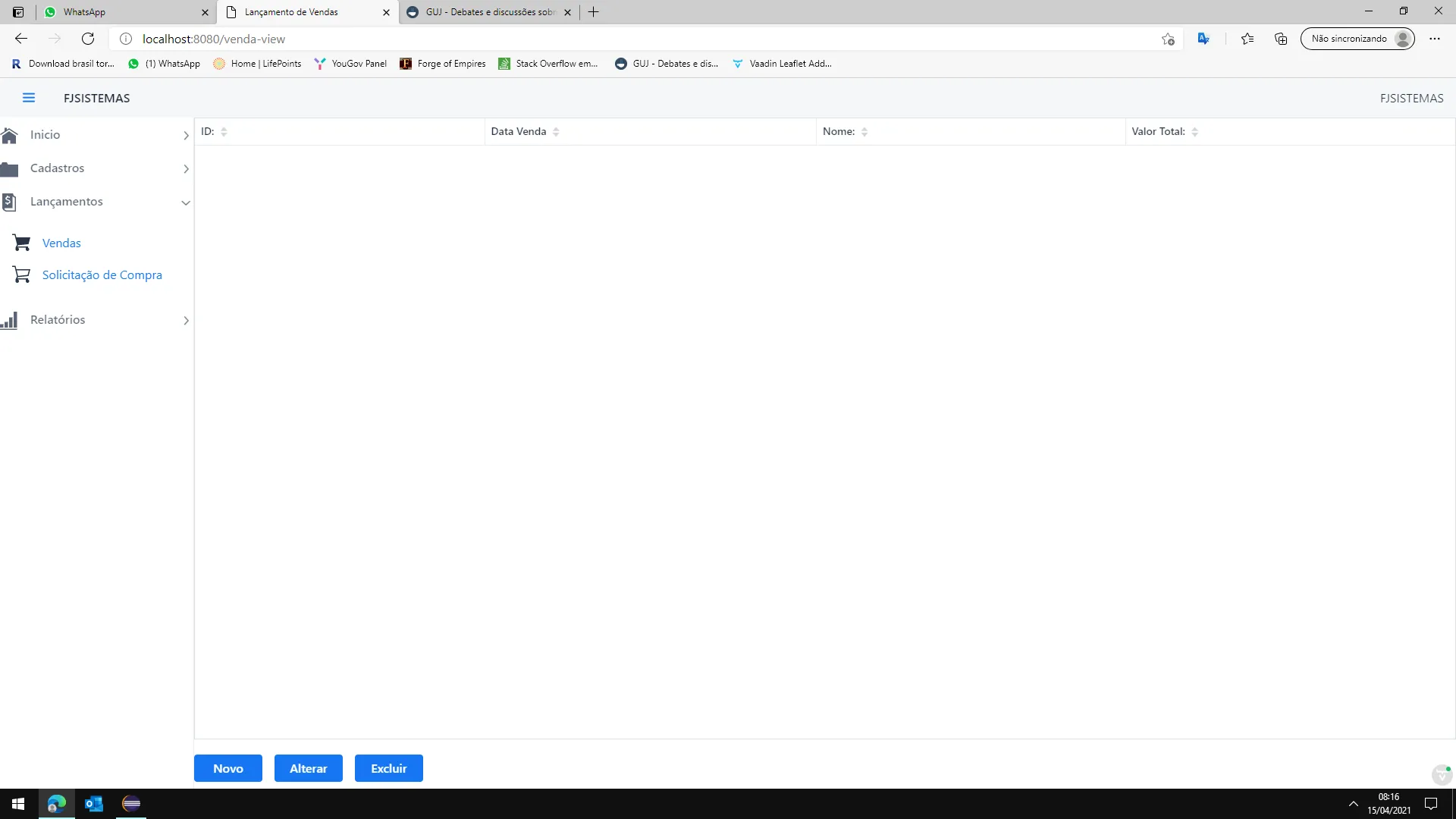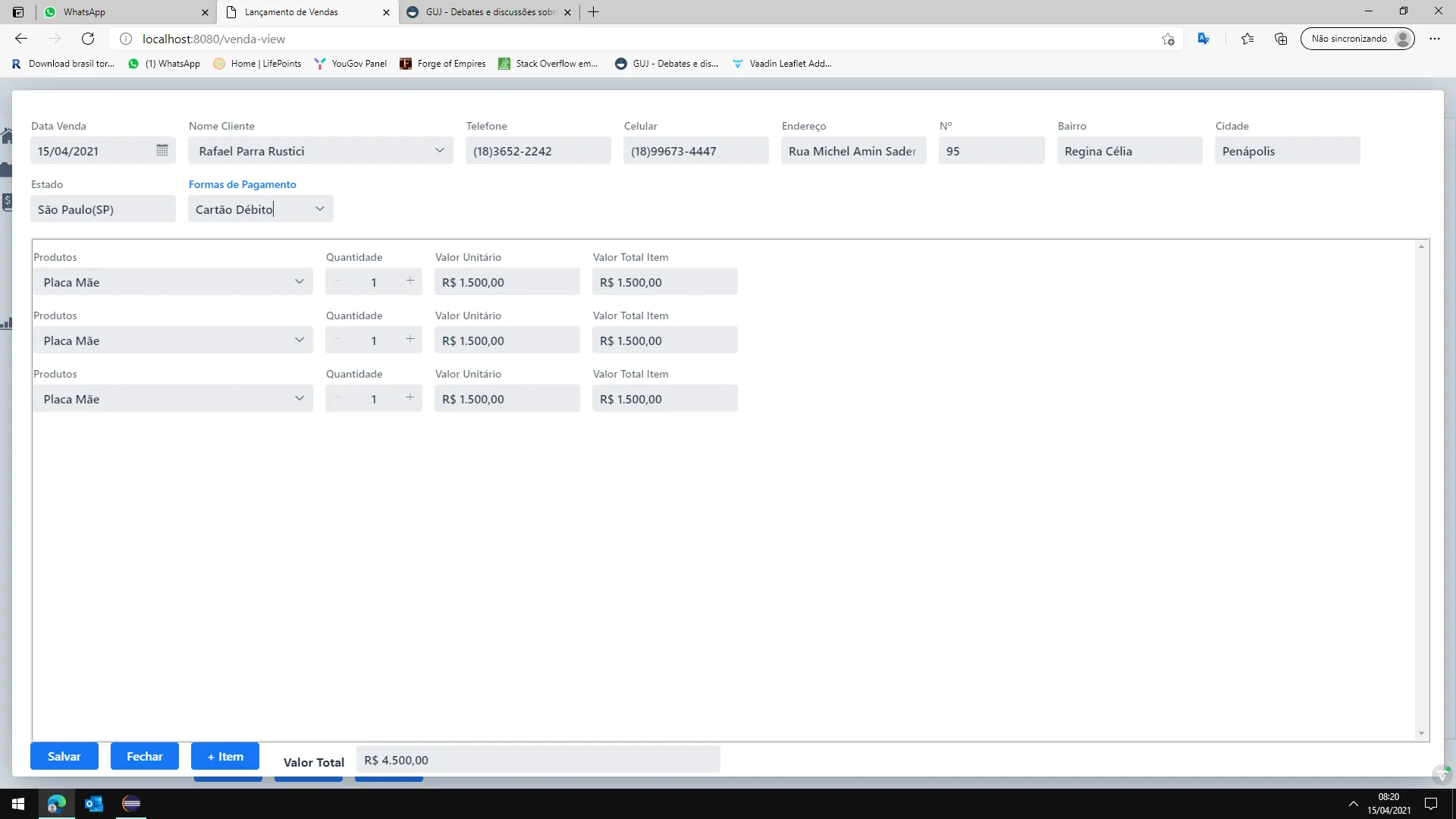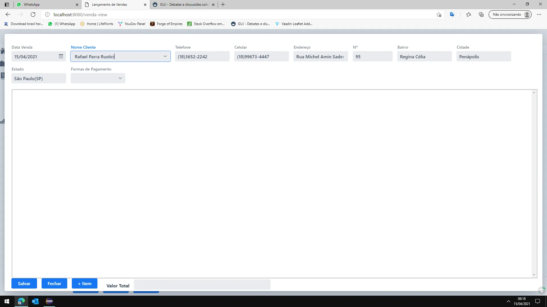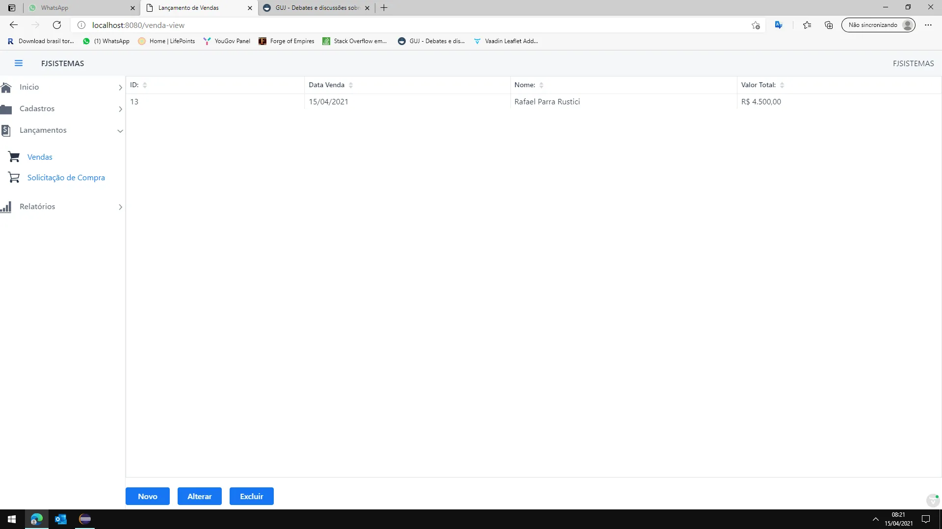 primeiro erro: Imagine que vc queria alterar/visualizar a venda que foi feita nas imagens acima, para isso clico em Alterar: