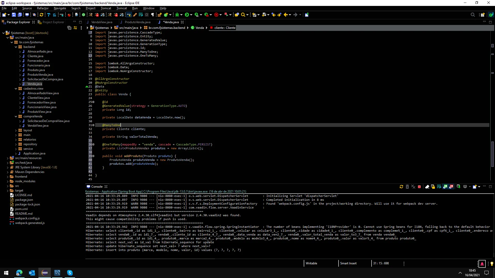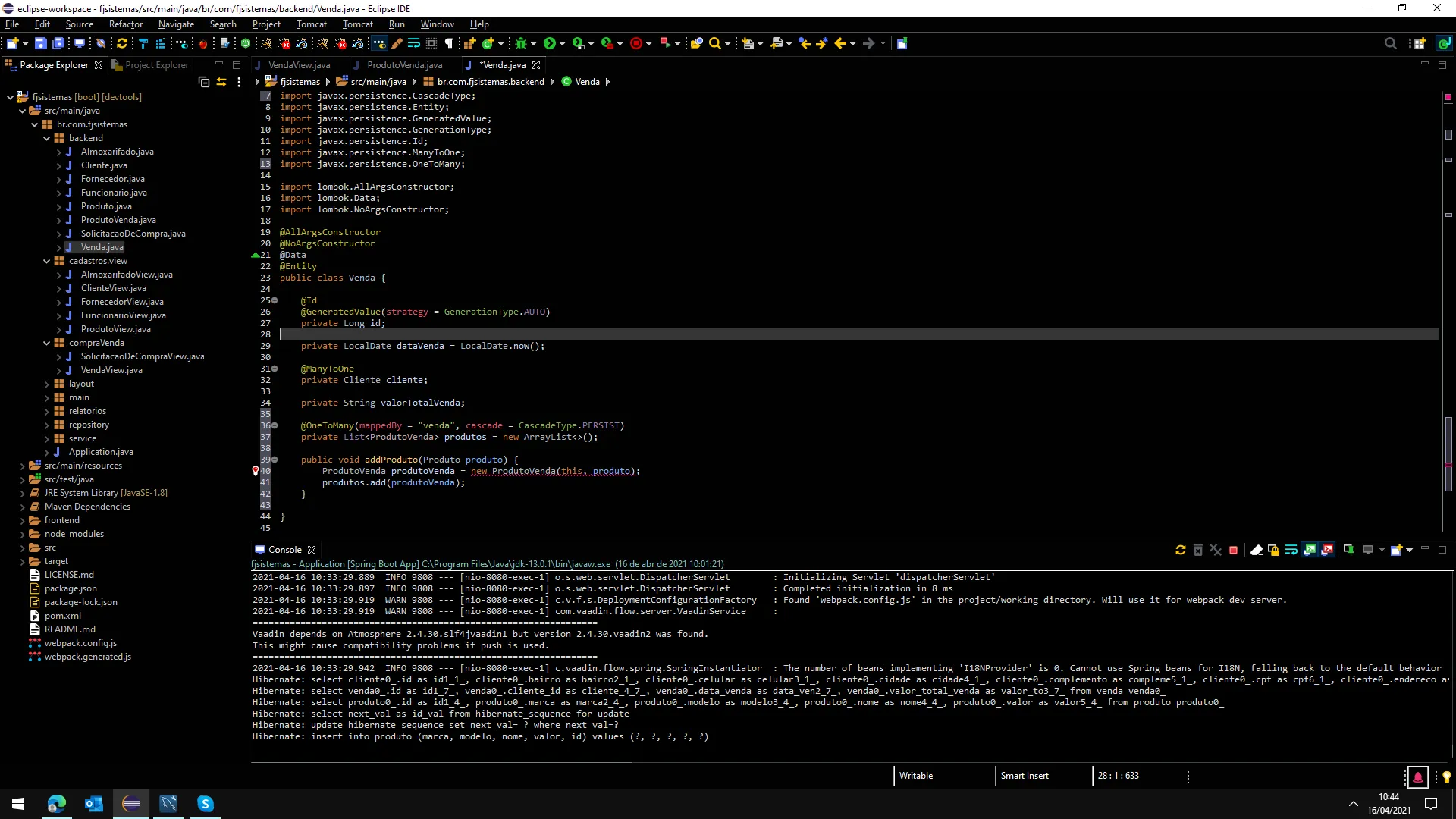Classe Entity Venda