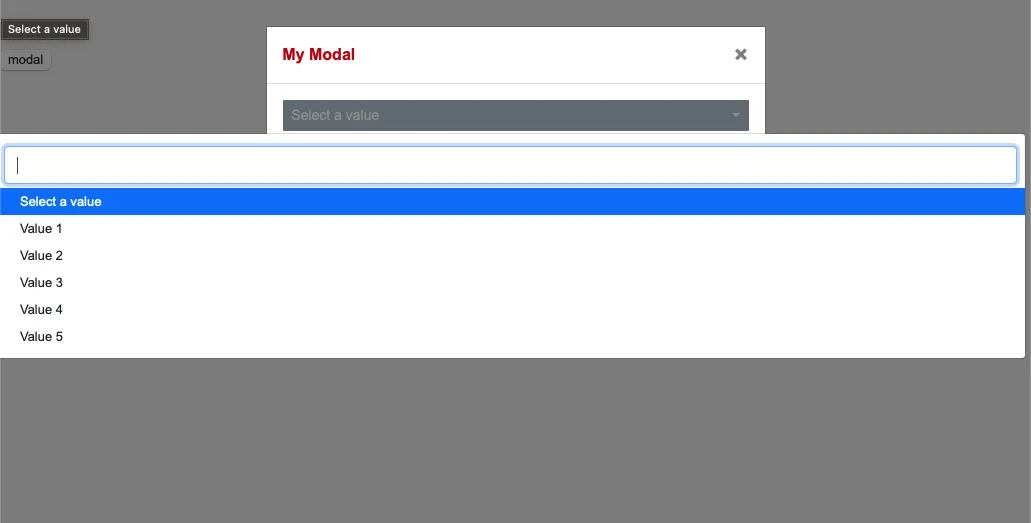<select class="selectpicker form-control" data-container="modal-body" data-live-search="true"