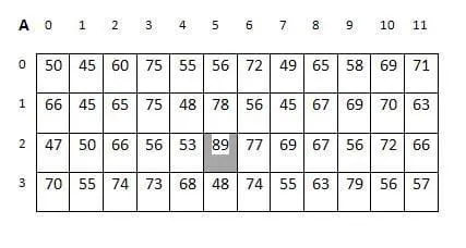 Uma fábrica de auto-peças usa uma matriz 4x12 para armazenar a produtividade anual. Cada linha indica uma semana e cada coluna indica um mês. A tabela abaixo ilustra um exemplo desta matriz.