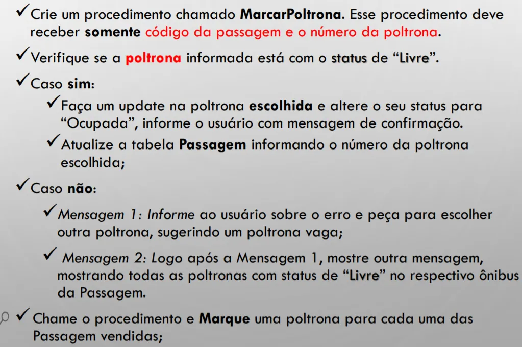create procedure marcarPoltrona(codigoPassagem int, numPoltrona int)