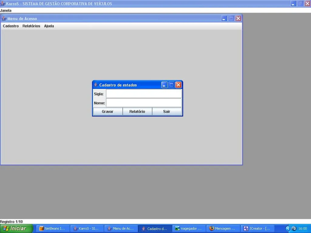 quando clicar para abrir a tela (cadastro de estado)… ela sobrepõe a tela de menu, fazendo o mesmo que uma JOptionPane.showMessageDialog faz com qualquer tela…