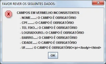 if(txtNome.getText().isEmpty()){erros.append("\n");erros.append("\t - nome.......: o campo é obrigatório\n".toUpperCase());txtNome.requestFocus();retorno=false;lblNome.setForeground(Color.RED);}else{lblNome.setForeground(Color.BLACK);}