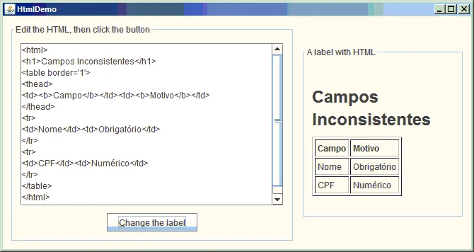 De fato, até que fica bonitinho. Veja o que você pode fazer com o HTML do Swing: