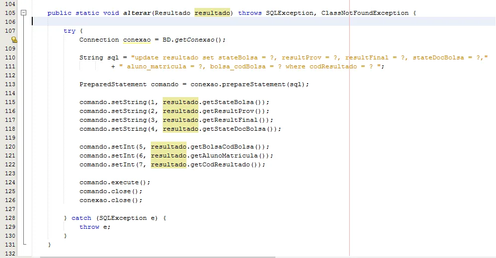 Tenho uma tabela resultado que possui duas chaves estrangeiras, que são aluno_matricula e bolsa_codBolsa.