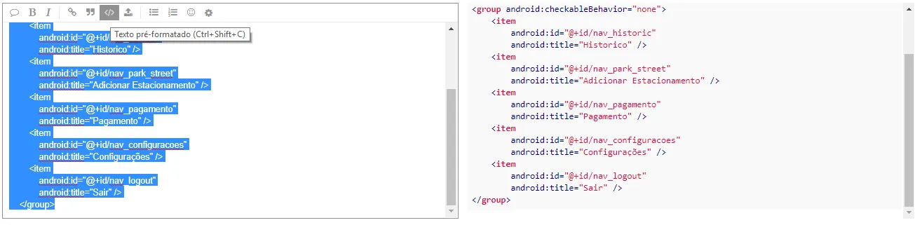 nao da certo… codigo é xml