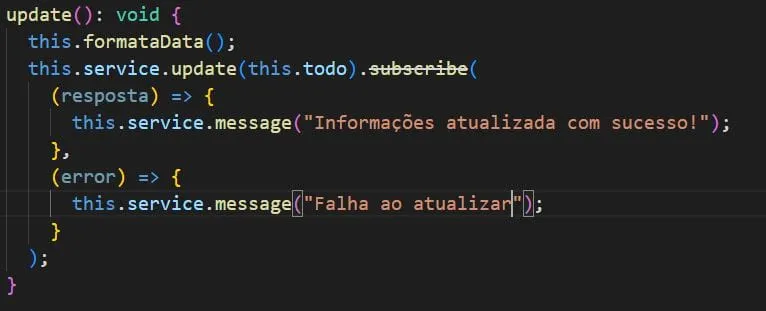 de update e diz que o subscribe está depreciado quando consumo do método update do service. Como resolver? Embora esteja funcionando, gostaria de atualizar.