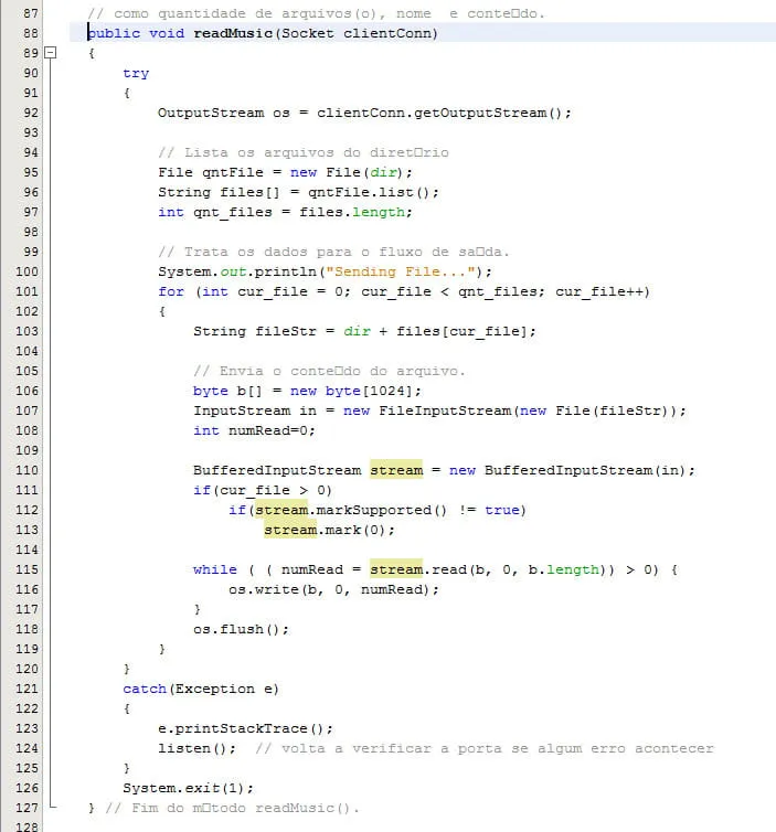 Aqui estão as partes do problema, o método de Server readMusic(), que lê os arquivos da pasta e envia os bytes pelo socket,