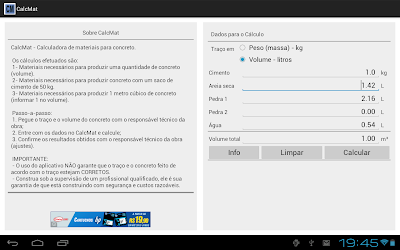 Acabo de publicar o app p/ Android: CalcMat - Calculadora de materiais para concreto