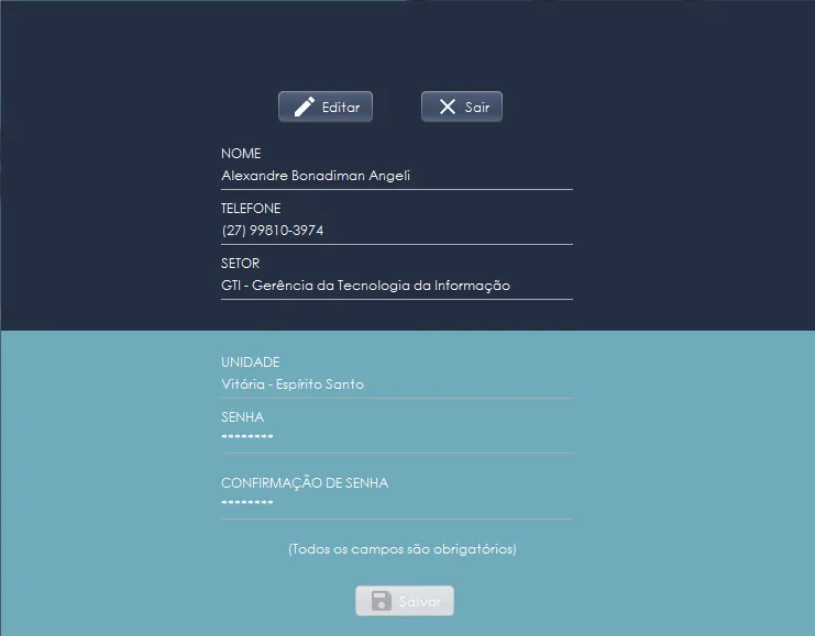 Eu tenho um sistema que realiza aqueles procedimentos básicos, insere no banco, deleta do banco, excluí do banco… Estou agora trabalhando no “Alterar”.