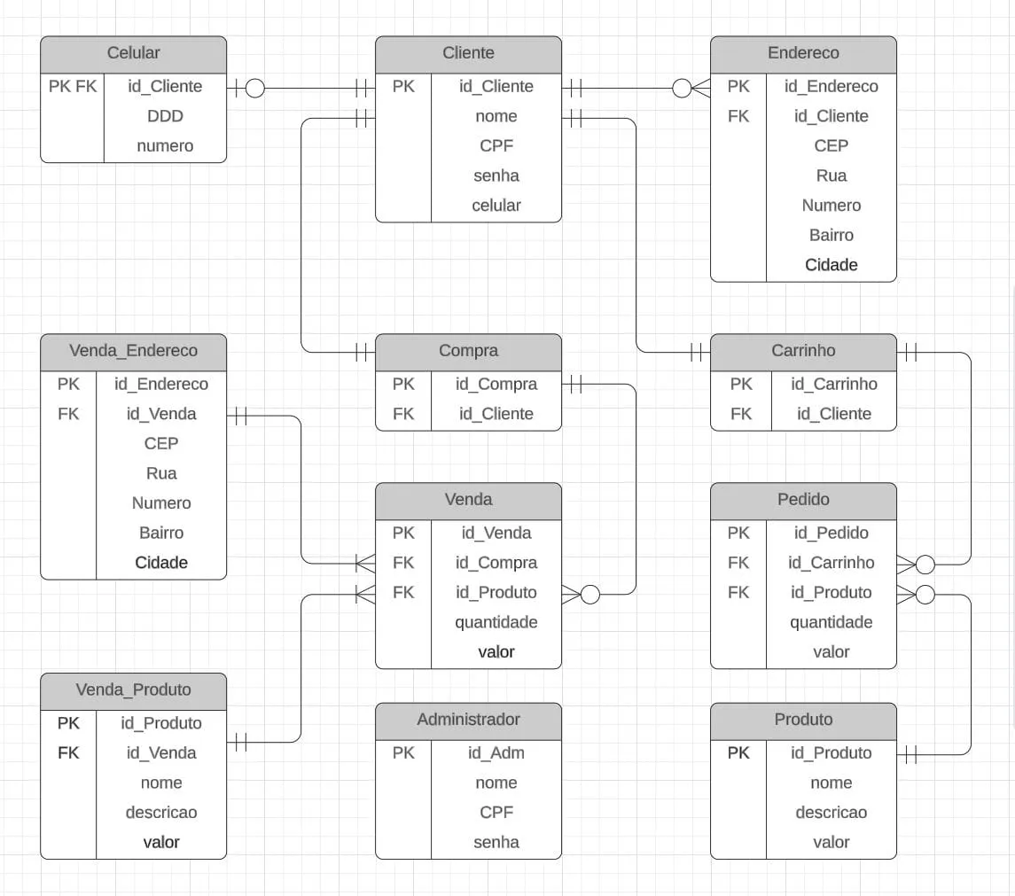 Quando um (Cliente) fecha seu (Carrinho) seus (Pedidos) são registrados como uma venda concretizada em (Vendas), para que um (Administrador) possa consultar esses dados depois!