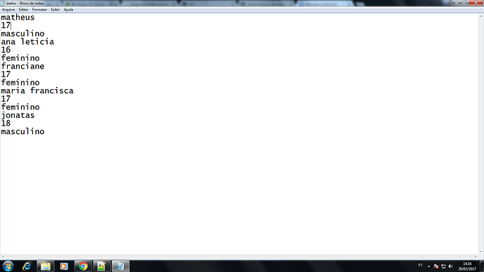 Tenho que fazer um programa em java que leia um arquivo que contém nome, idade e sexo de algumas pessoas, depois esse programa deve mostrar só o nome das pessoas que possuem o sexo feminino e quantas pessoas são. Tenho esse código abaixo.