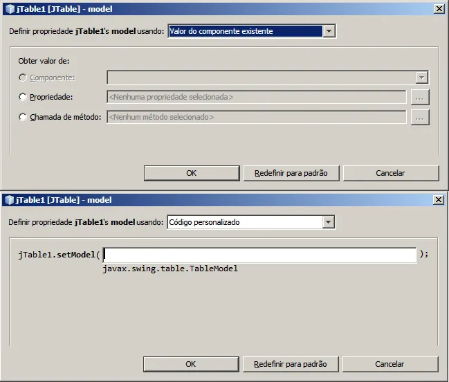 intsizeTtitulob=0; for(inti=0; i <minhaLista.size(); i++){ ttitulob.addRow(linha); sizeTtitulob=ttitulob.getRowCount()-1; // tinha esquecido do -1 ttitulob.setValueAt(minhaLista.get(i).getData(),sizeTtitulob,0); ttitulob.setValueAt(minhaLista.get(i).getCod(),sizeTtitulob,1); ttitulob.setValueAt(minhaLista.get(i).getProduto(),sizeTtitulob,2); ttitulob.setValueAt(minhaLista.get(i).getQuant(),sizeTtitulob,3); ttitulob.setValueAt(minhaLista.get(i).getValor(),sizeTtitulob,4);