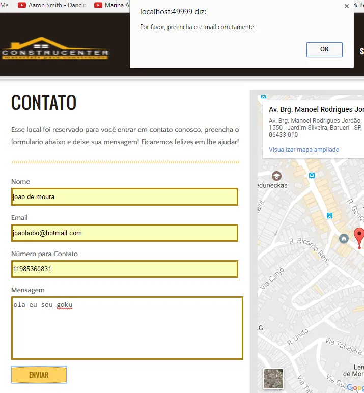Estou tendo um problema no meu web site que estou programando. Ele já está feito, mas quando vou em contato e coloco os dados para poder mandar para o banco de dados ocorre esse seguinte erro: