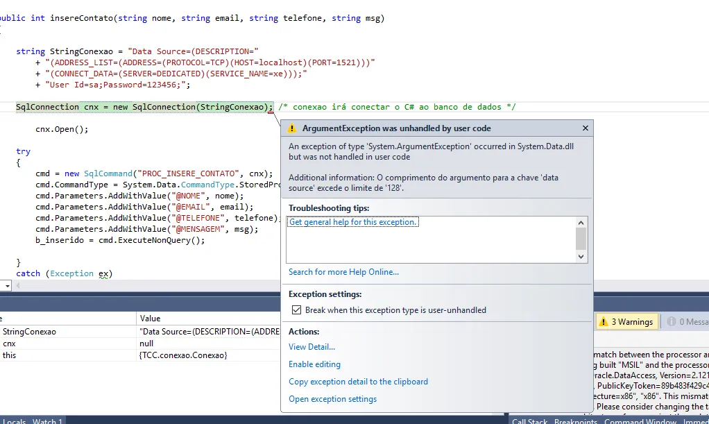 sim, olha só eu mudei a string de conexao pq estava com o sql server, mas eu estou usando oracle, sql developer. Agora mudou o erro: