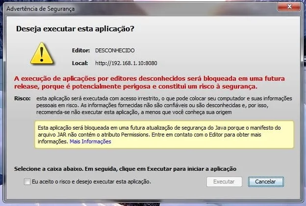 Estou com um problema, tenho uma aplicação no netbeans e quando eu atualizo a versão do java para a 7.45 ele da um erro conforme segue imagem abaixo, já li que tem que marcar a opção eu aceito o risco mas mesmo assim o sistema não abre. Alguém já teve esse problema e tenha conseguido resolver? Agradeço a ajuda.