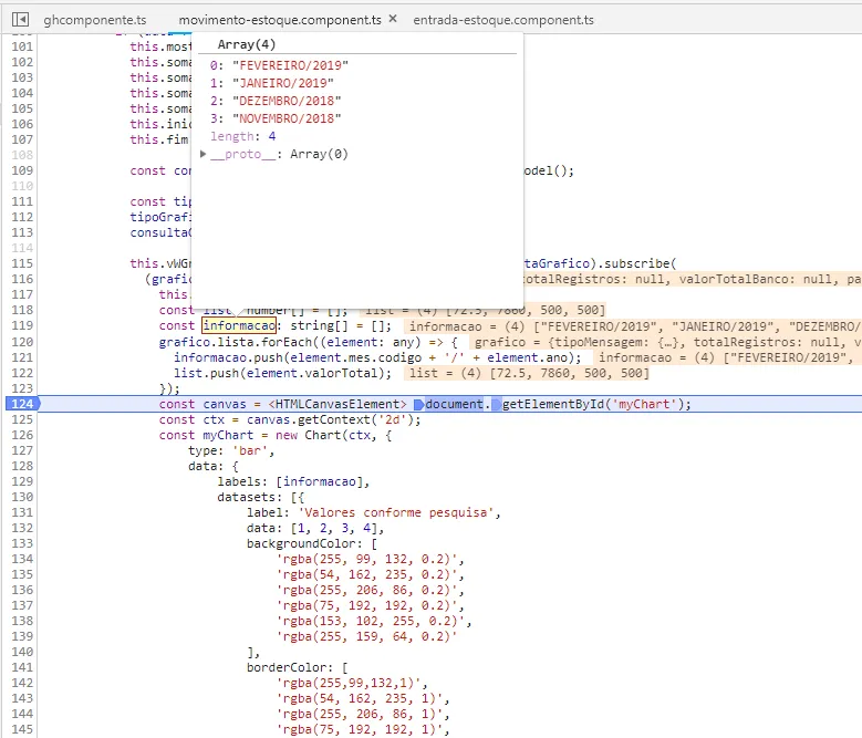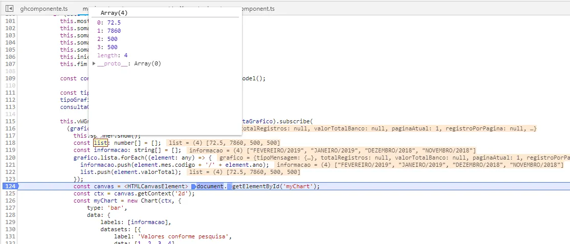 private montarGrafico(){ let pesquisa = new PesquisaResultadoModel; pesquisa.ano = this.ano; this.pesquisaService.pesquisar(pesquisa).subscribe( (data :any) => { data.lista.forEach(lista => { this.pieChartLabels.push(lista.mes); this.pieChartData.push(); }); }, err => { this.openSnackBar('Erro ao montar gráfico !', false); } ); }