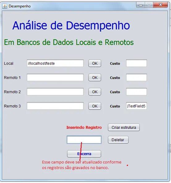 Estou fazendo um trabalho para a disciplina de Banco de Dados II, no qual é necessário criar um aplicativo que conecte-se ao banco e gere 500.000 registros. Até aí tudo bem, porém, o aplicativo deve possuir uma janela com um JTextField que exibe o registro a ser gravado, que, no meu caso, pode ser o nome ou código do registro e é onde estou penando para concluir.