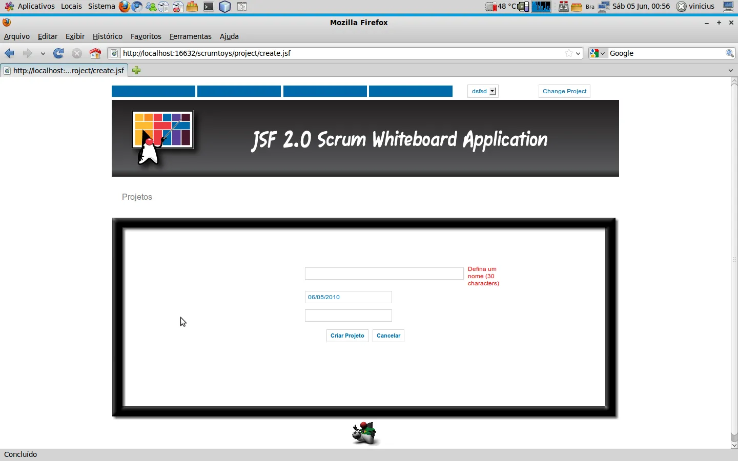 Pessoal, estava fazendo uma aplicação utilizando JSF 2.0 + DI + Bean Validation pra testar as novas funcionalidades. No final acabei percebendo um bug. Quando a validação de dados falhava em um formulário, a página era exibida novamente, com as mensagens apropriadas sendo mostradas mas sem os componentes de texto, como os outputLabels e outputText. Pensei que poderia ser um erro meu, mas abri o exemplo do ScrumToys e rodei. Deu na mesma. Alguém aqui já verificou esse erro também?
