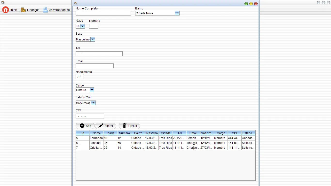 Cadastro membros