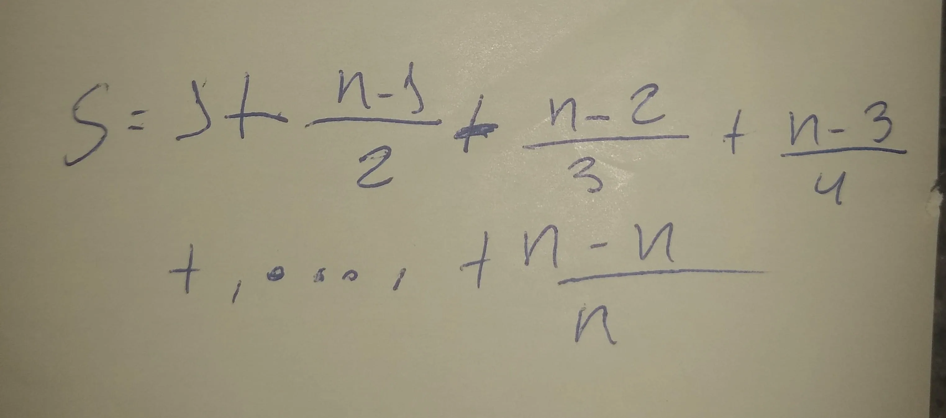 S=1+n-1/2+n-2/3+n-3/4+,…,+n-n/n