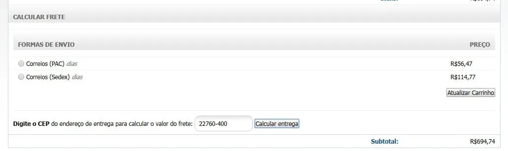 Tenho uma loja virtual da Interspire e toda vez que calculo o frete ela não exibe o prazo, conforme print.