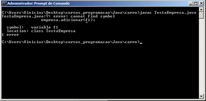 Estou fazendo um exercicio de um curso de Java e me deparei com a mensagem Cannot find symbol no terminal ao tentar compilar uma classe. Li que isso geralmente acontece quando o compilador não acha uma variável que eu estou tentando usar, porém no meu caso o compilador se refere ao nome de um parametro que estou tentando passar para um metodo. Qual é o problema do código? Segue o código e a mensagem de erro: