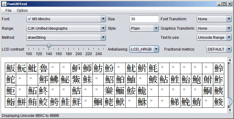Pergunta: eu pus uma imagem do Font2Test e posicionei em uma determinada parte do Unicode dos caracteres japoneses e chineses.