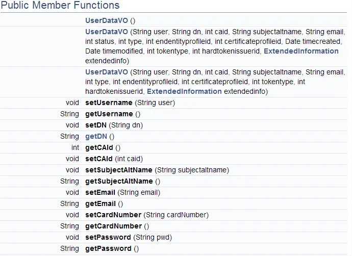 A classe UserDataVO esta na imagem, como a API é grande de mais, não achei exatamente a classe, somente pelo doxygen.