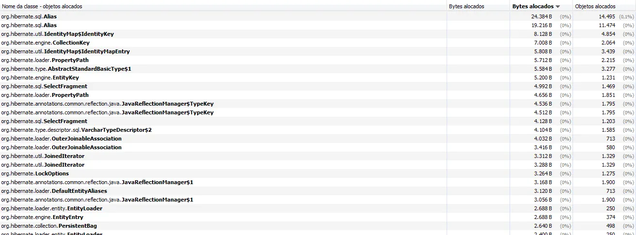 Depois de analisar bastante o código, gerei um Profiler das classes do Hibernate.