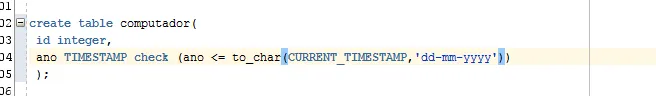 ALTER TABLE Computador ADD CONSTRAINT Ano CHECK (Ano < GetDate() );