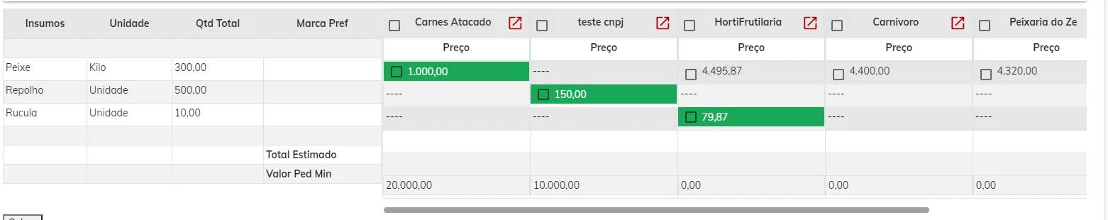 Como está a estrutura dos dados dessa tabela? Imagino que vc tenha uma lista de fornecedores em algum lugar. Como está a implementação da função defineFornecedoresValorCorreto?