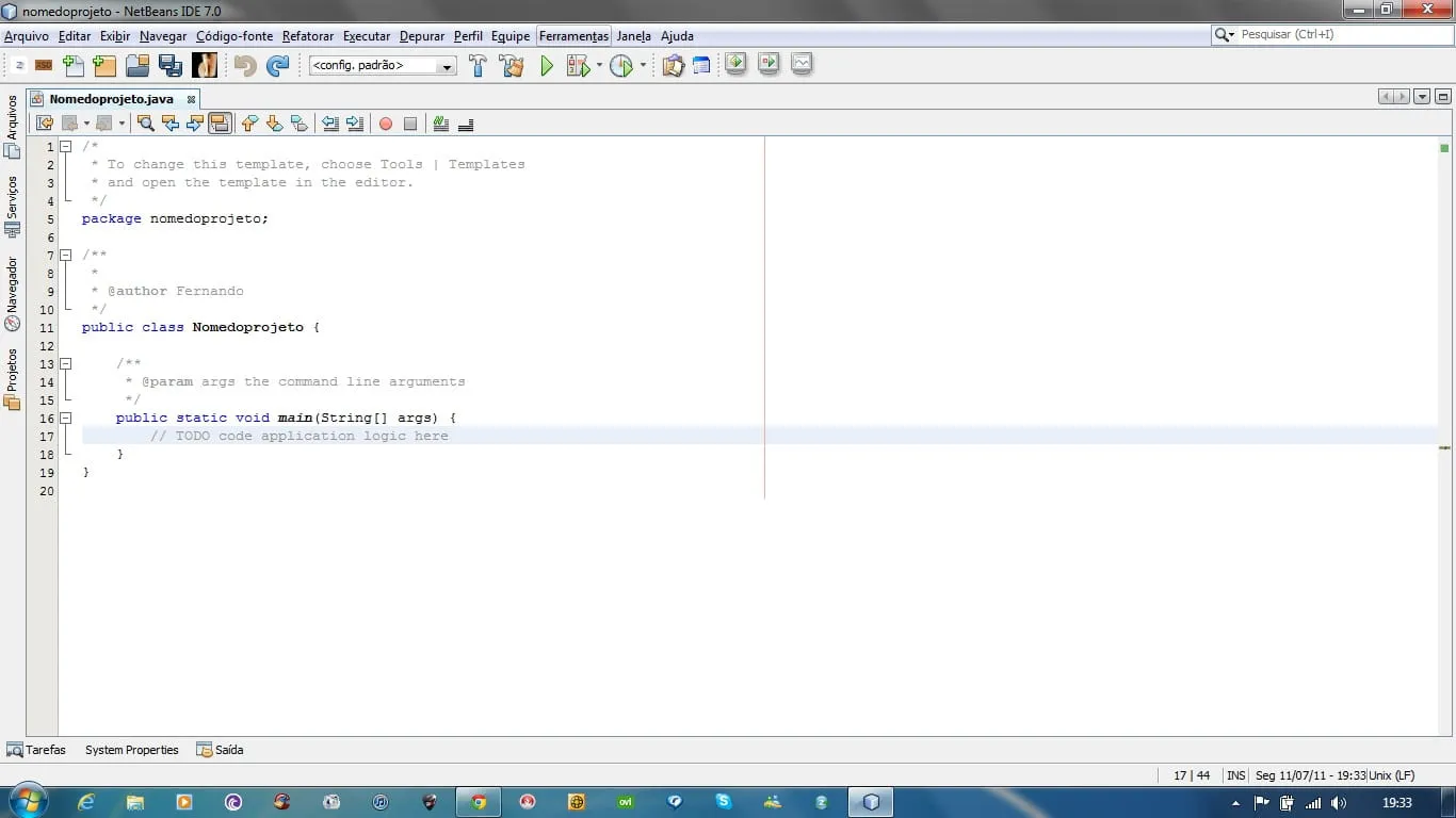 “package nomedoprojeto;”