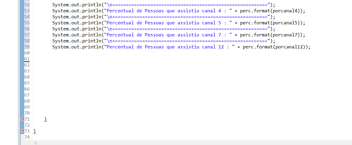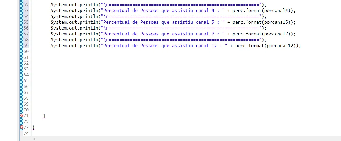 System.out.println("Percentual de Pessoas que assistiu canal 7 : " + perc.format(porcanal7));